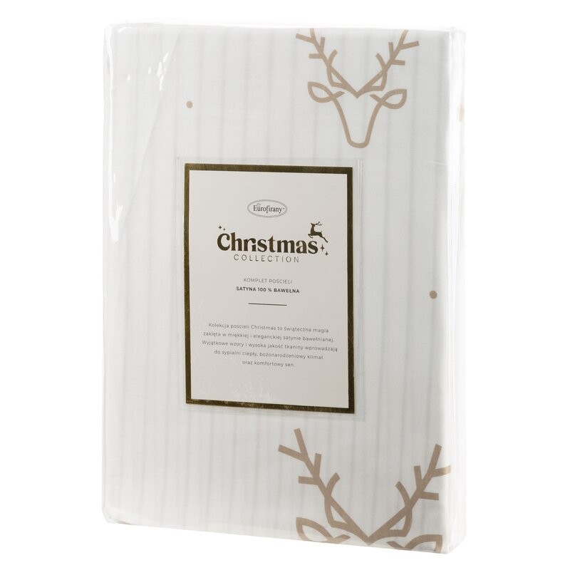 Komplet pościeli satynowej z nadrukiem świątecznym szerokość: 160 cm, długość: 200 cm, kolor: biały, Gramatura: 115 GSM, Skład: satyna, 100% bawełna