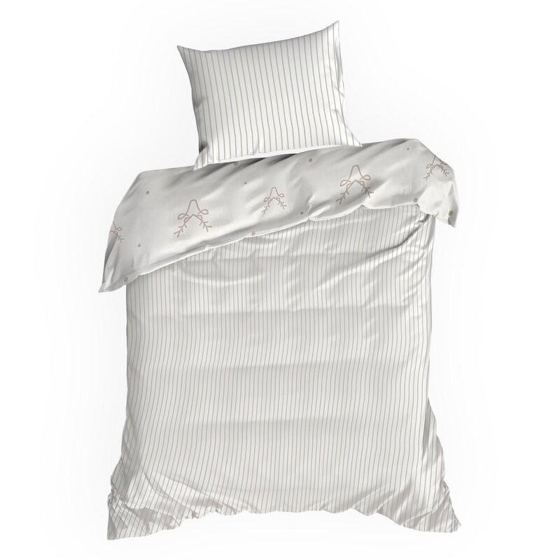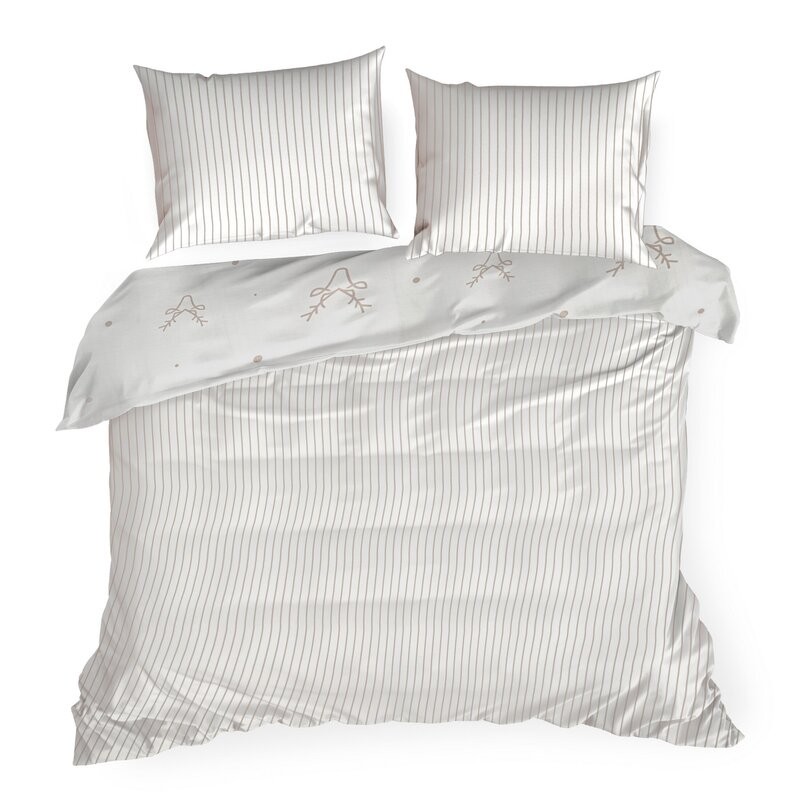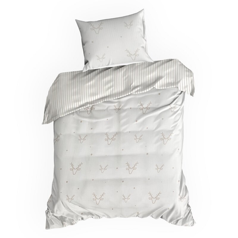 Komplet pościeli satynowej z nadrukiem świątecznym szerokość: 140 cm, długość: 200 cm, kolor: jasnoszary, Gramatura: 115 GSM, Skład: satyna, 100% bawełna