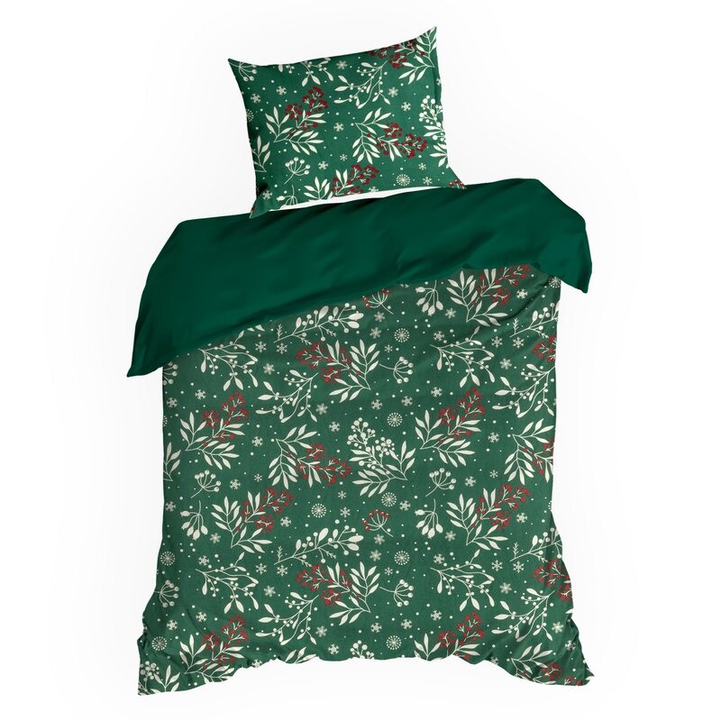 świąteczny Komplet Pościeli Clover 160 X 200 Cm Ciemnozielony