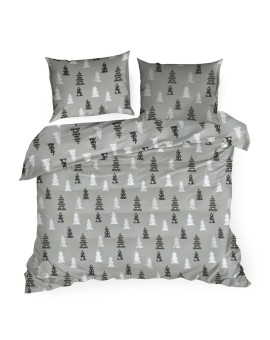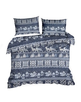 Komplet pościeli z flaneli bawełnianej z nadrukiem świątecznym szerokość: 140 cm, długość: 200 cm, kolor: stalowy, Gramatura: 150 GSM, Skład: flanela, 100% bawełna