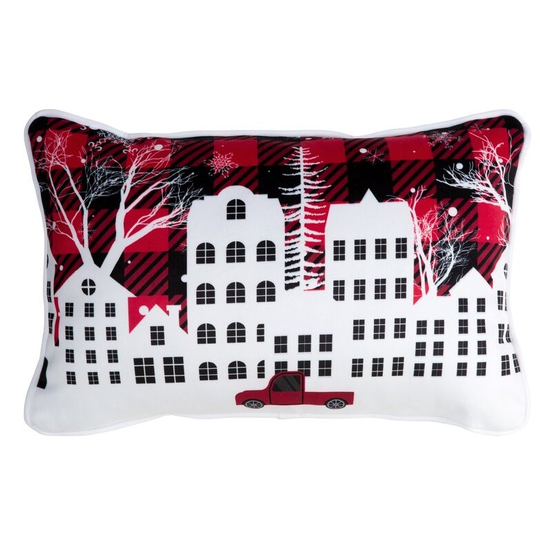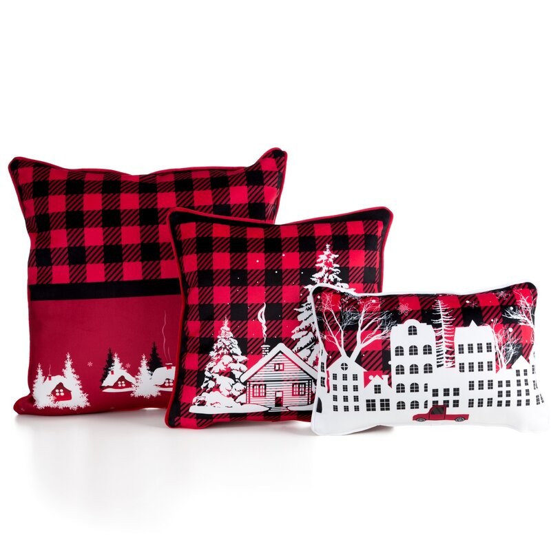 Poszewka świąteczna CAROL z welwetu zdobiona nadrukiem ze śnieżynkami i wypustką na brzegach