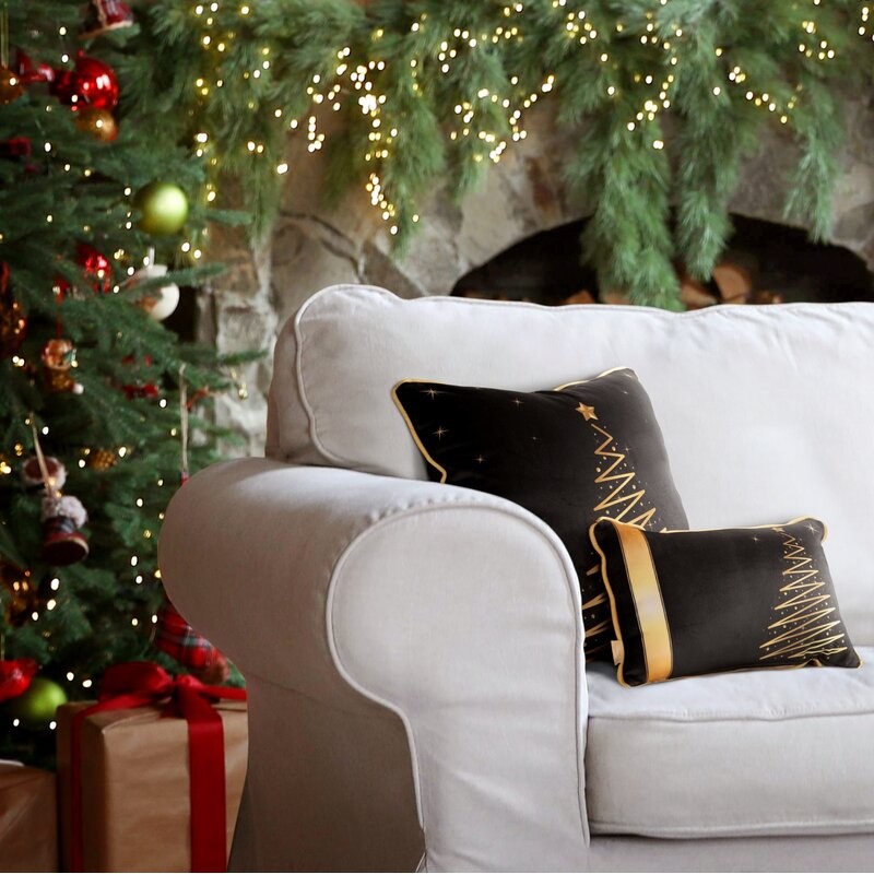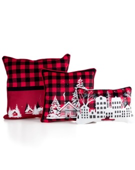 Poszewka świąteczny HOLLY z nadrukiem gałązek i motywem kraty