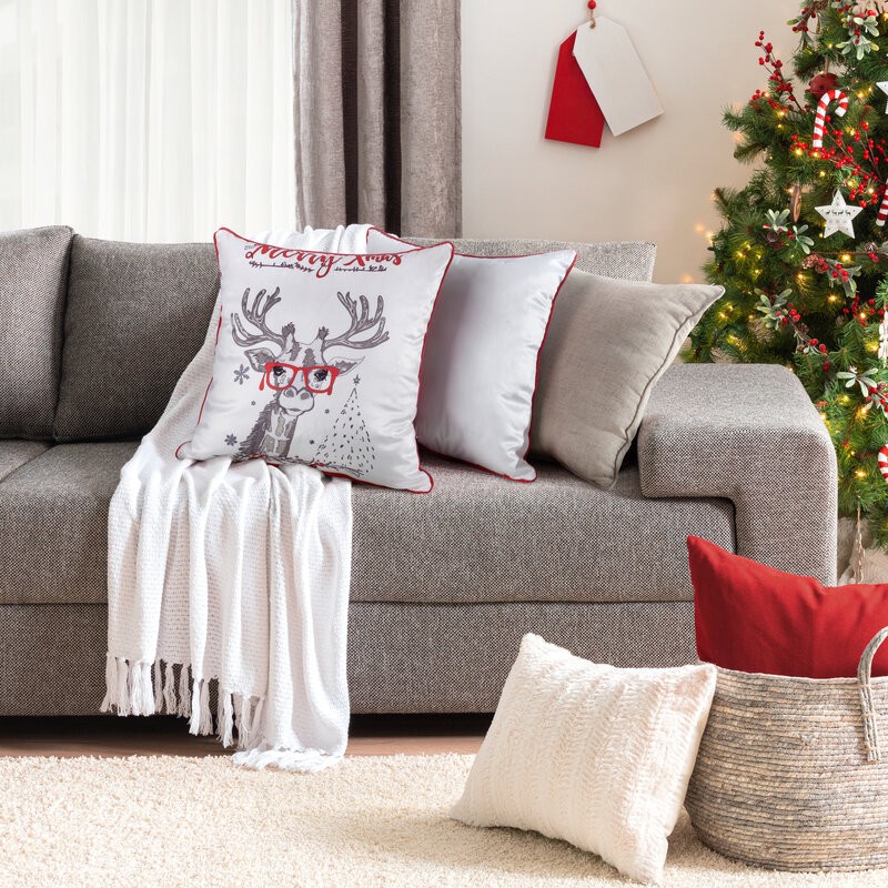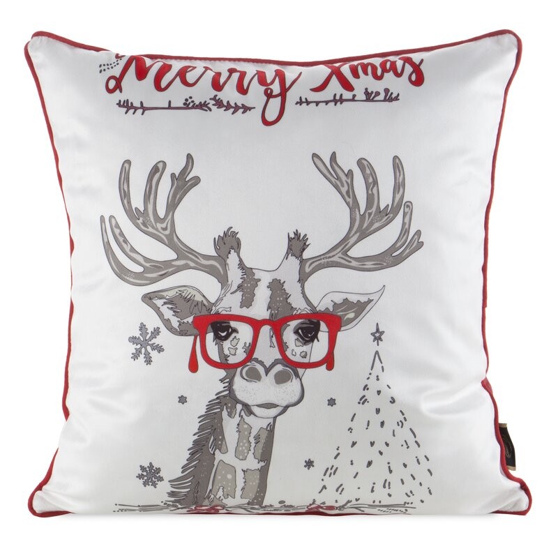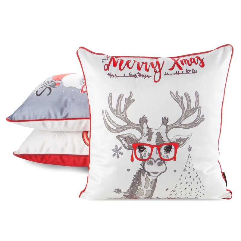 Welwetowa poszewka dekoracyjna z ozdobnym światecznym nadrukiem szerokość: 45 cm, długość: 45 cm, kolor: biały, Gramatura: 200 GSM, Skład: 100% poliester