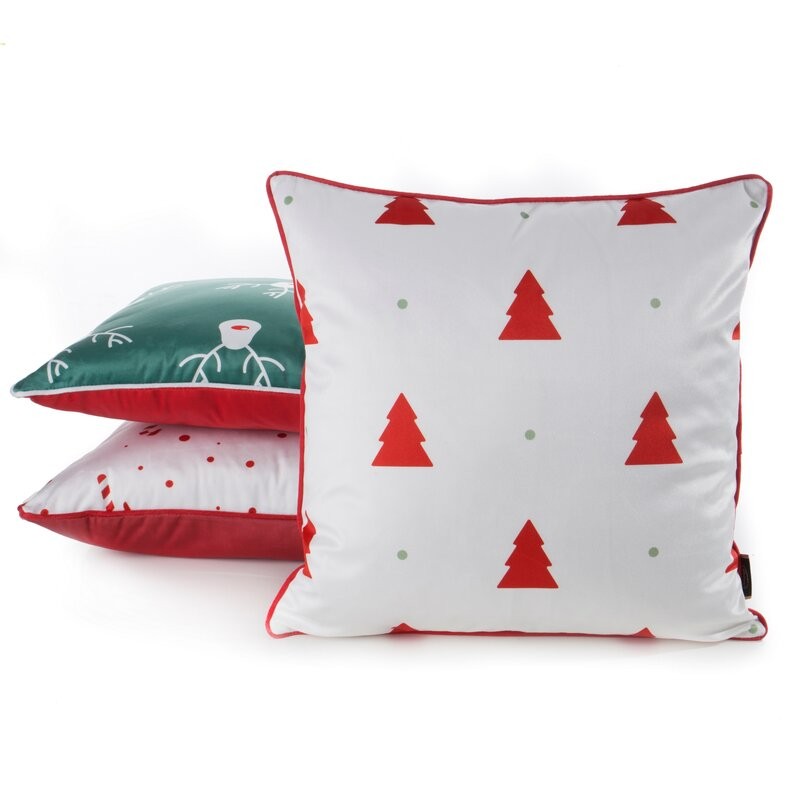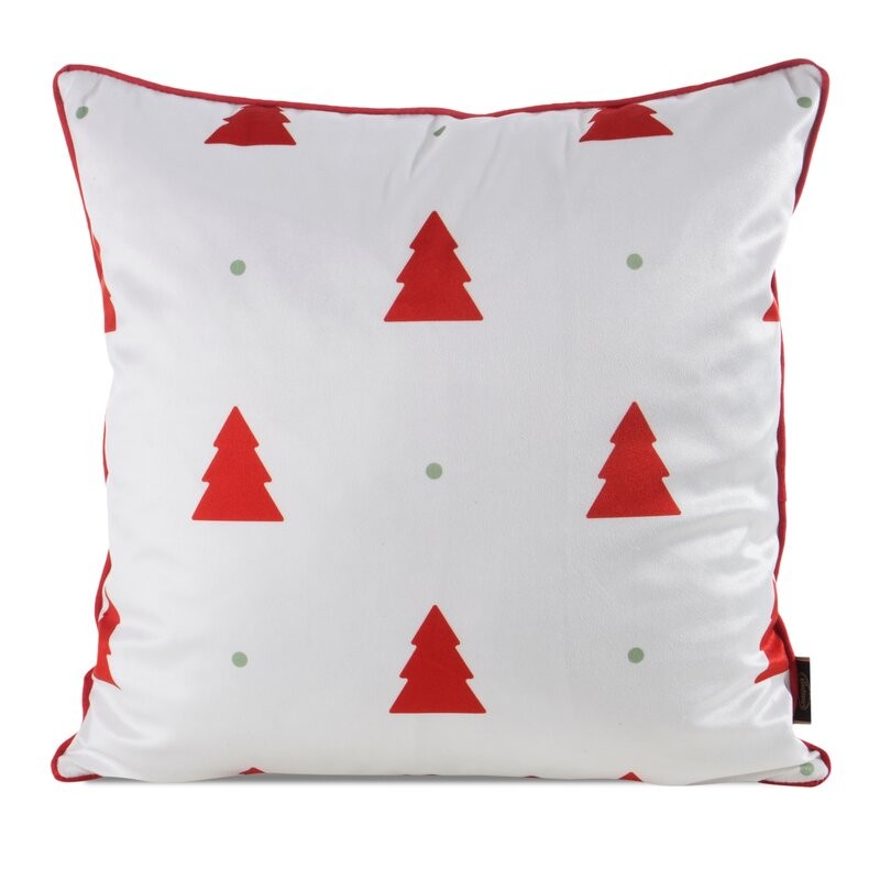 Welwetowa poszewka świąteczna z ozdobnym nadrukiem i lamówką szerokość: 45 cm, długość: 45 cm, kolor: biały, Gramatura: 200 GSM, Skład: 100% poliester