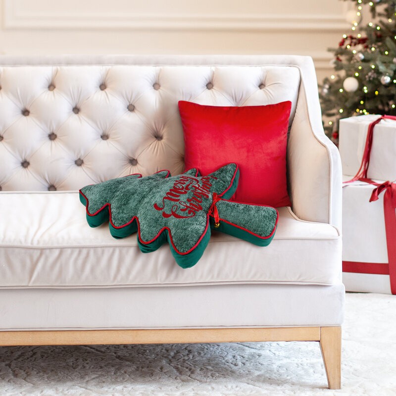 Wprowadź wyjątkowy, świąteczny akcent do swojego wnętrza dzięki poduszce w kształcie choinki. Wykonana z miękkiego welwetu szenilowego, wypełniona dla komfortu użytkowania, zachwyca detalami – brzegi choinki zdobi kontrastująca lamówka, która podkreśla jej kształt i dodaje elegancji. Idealna na kanapę, fotel czy łóżko w okresie świątecznym.