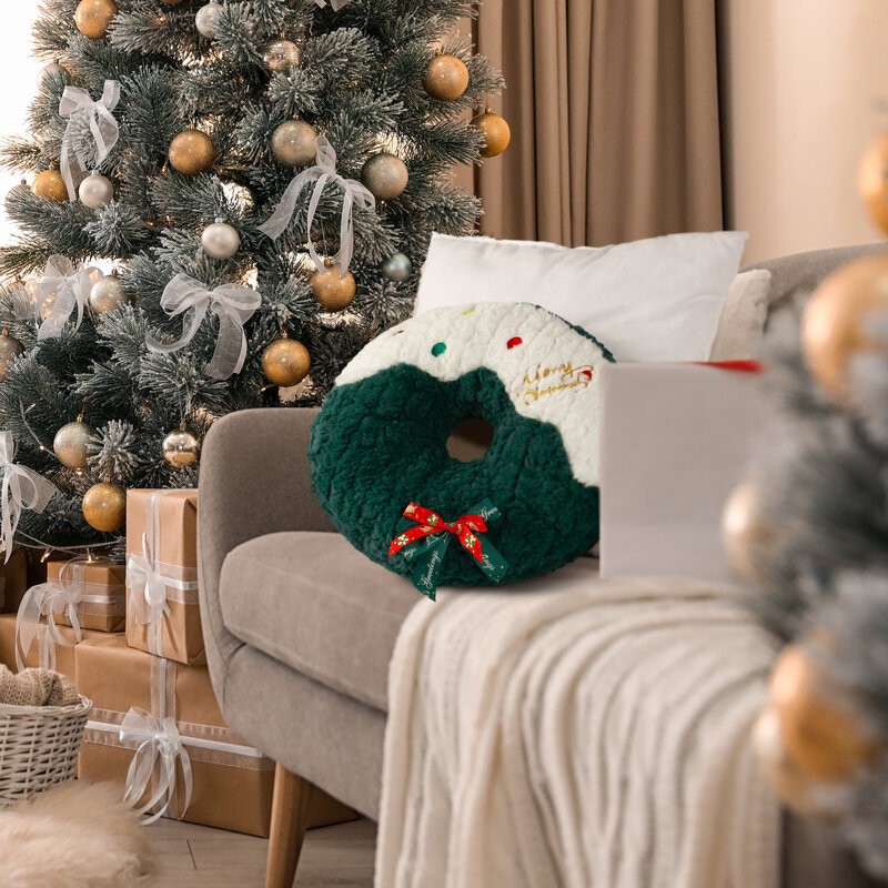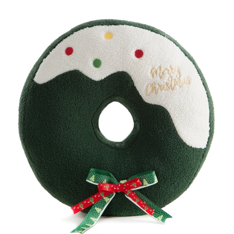 Dodaj odrobinę świątecznej słodyczy i uroku do swojego wnętrza dzięki dekoracyjnej poduszce w kształcie pączka z dziurką. Wykonana z miękkiej tkaniny typu bukla, zachwyca nie tylko przyjemną fakturą, ale także dekoracyjną kokardką, która nadaje jej wyjątkowego charakteru. Idealna na kanapę, fotel czy łóżko, tworzy przytulny i wesoły akcent w świątecznym wnętrzu.