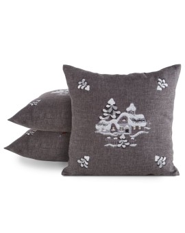 świąteczna poszewka dekoracyjna z ozdobną aplikacją szerokość: 45 cm, długość: 45 cm, kolor: stalowy, Gramatura: 200 GSM, Skład: 100% poliester