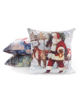 Welwetowa poszewka dekoracyjna z ozdobnym światecznym nadrukiem szerokość: 45 cm, długość: 45 cm, kolor: biały, Gramatura: 200 GSM, Skład: 100% poliester