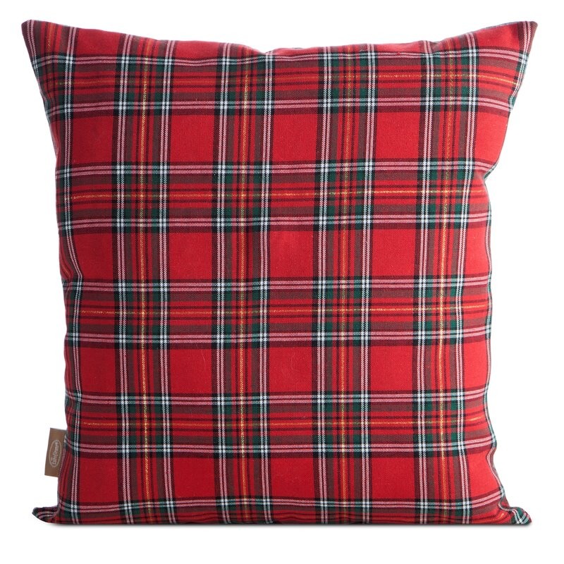 Poszewka świąteczna CLARK z miękkiego welwetu z motywem kratki i wypustką na brzegach