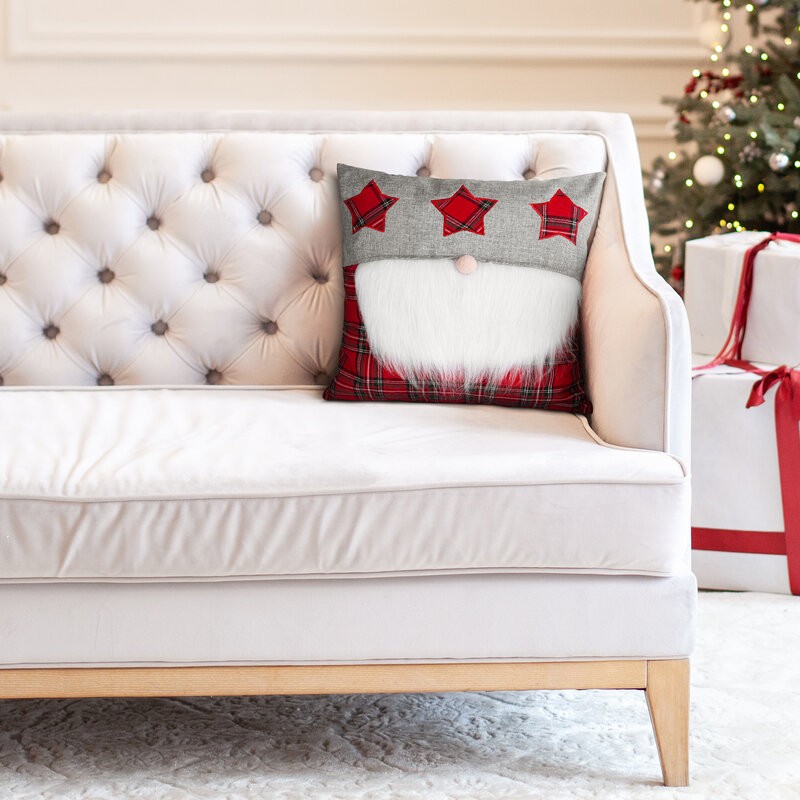 Poszewka świąteczna gobelinowa z mieszanki włókien zdobiona nadrukiem Mikołaja