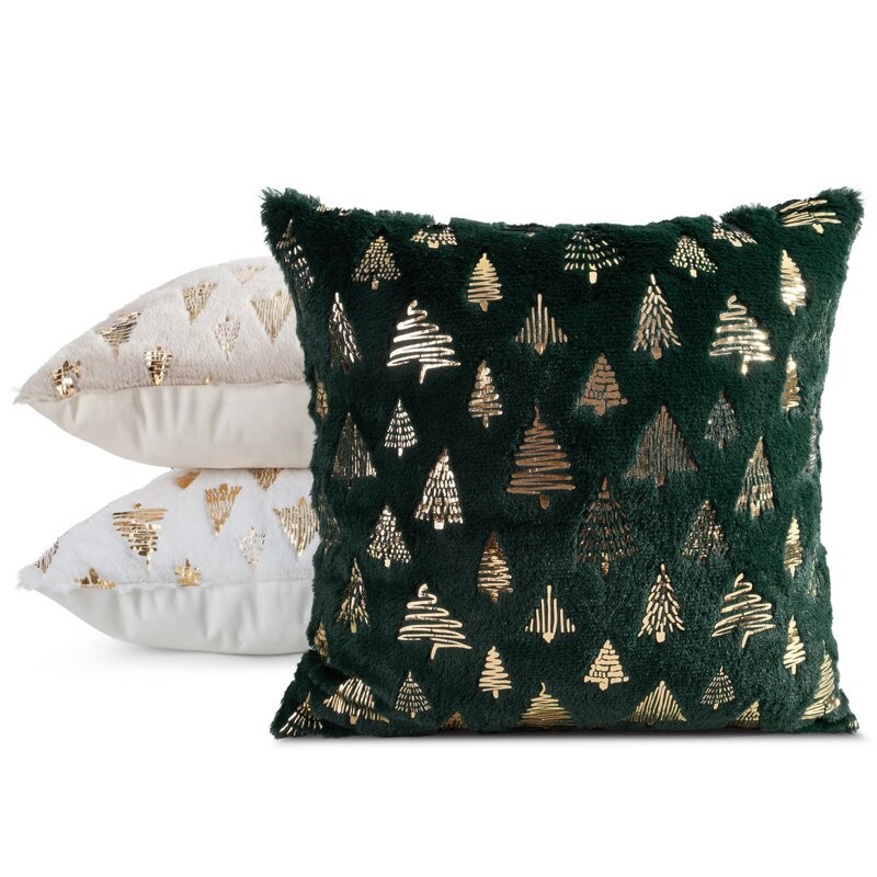 świąteczna poszewka welwetowa z ozdobnym nadrukiem foliowym szerokość: 30 cm, długość: 50 cm, kolor: biały, Skład: 100% poliester