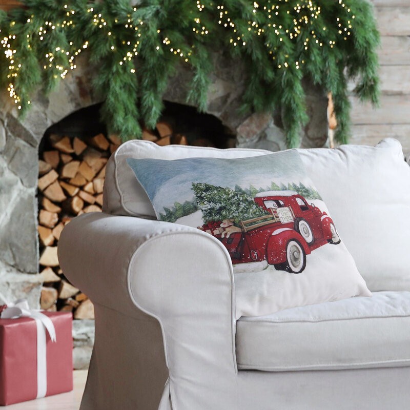 Poszewka świąteczny HOLLY z nadrukiem gałązek i motywem kraty