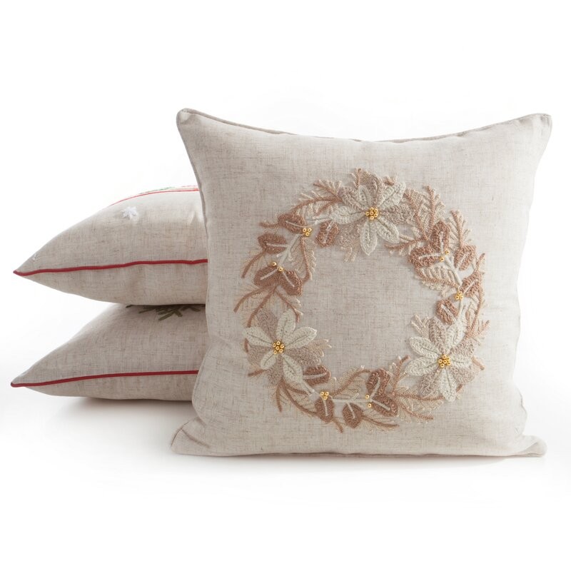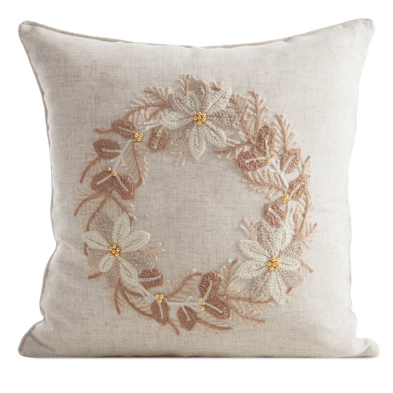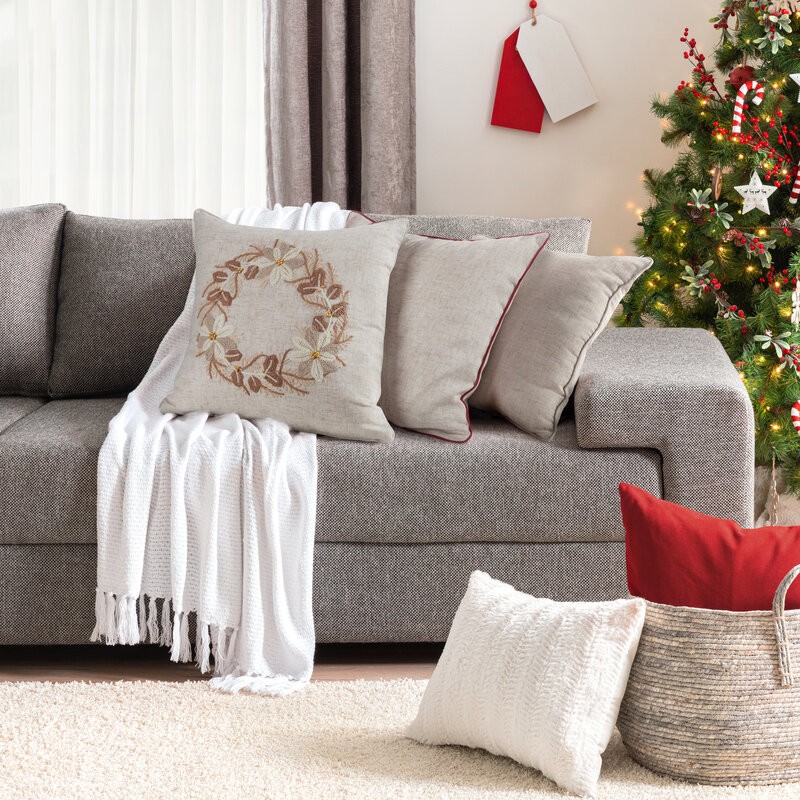 Dodaj wnętrzu elegancji i świątecznego uroku! Ta dekoracyjna poszewka została wykonana z tkaniny imitującej len, która nadaje aranżacji naturalny i przytulny charakter. Zdobiona haftowaną aplikacją, wprowadza subtelny, świąteczny akcent, a elegancka wypustka na brzegach podkreśla dekoracyjny styl i dbałość o detale.