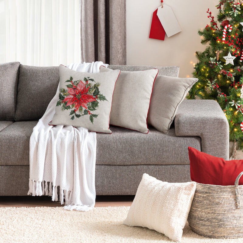 Poszewka gobelinowa ze świątecznym wzorem szerokość: 45 cm, długość: 45 cm, kolor: naturalny, Gramatura: 315 GSM, Skład: 63% poliester, 34% bawełna, 3% akryl