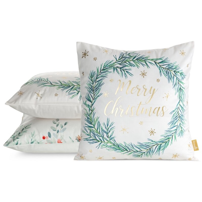 świąteczna poszewka welwetowa z ozdobnym nadrukiem foliowym szerokość: 45 cm, długość: 45 cm, kolor: biały, Gramatura: 210 GSM, Skład: 100% poliester