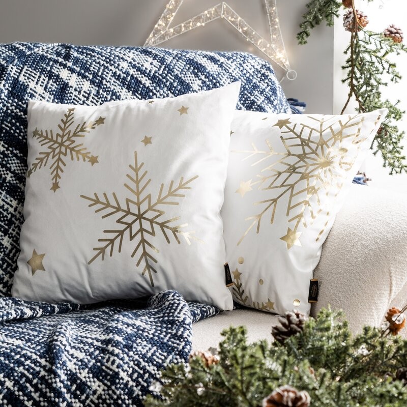 świąteczna poszewka welwetowa z ozdobnym nadrukiem foliowym szerokość: 30 cm, długość: 50 cm, kolor: biały, Skład: 100% poliester