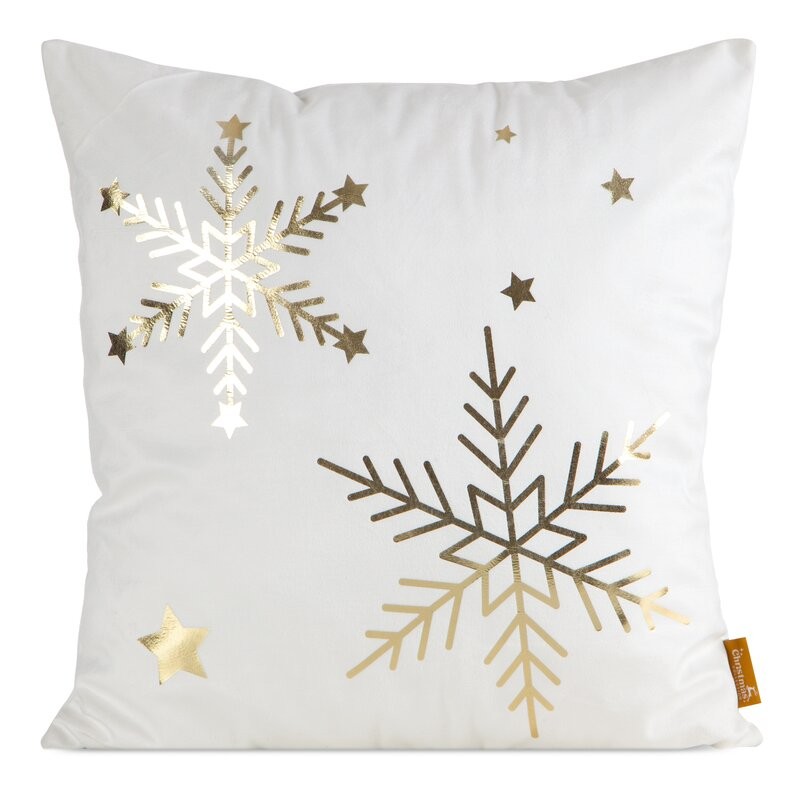 świąteczna poszewka welwetowa z ozdobnym nadrukiem foliowym szerokość: 45 cm, długość: 45 cm, kolor: biały, Skład: 100% poliester