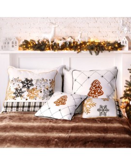 świąteczna poszewka dekoracyjna z ozdobnym nadrukiem i złotą nicią szerokość: 45 cm, długość: 45 cm, kolor: kremowy, Gramatura: 180 GSM, Skład: 83% poliester, 17% len