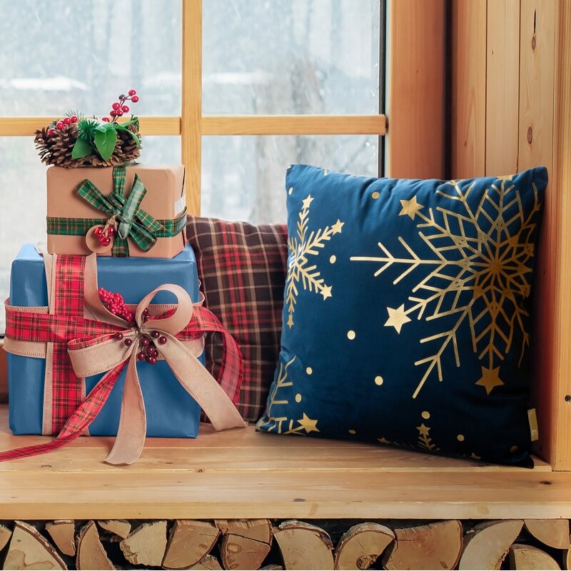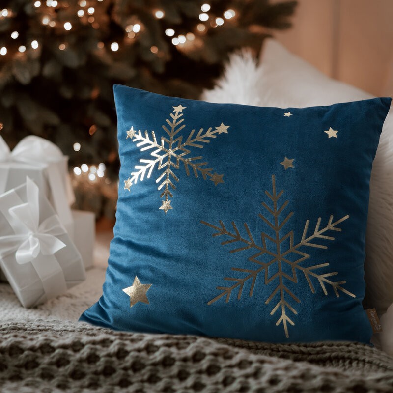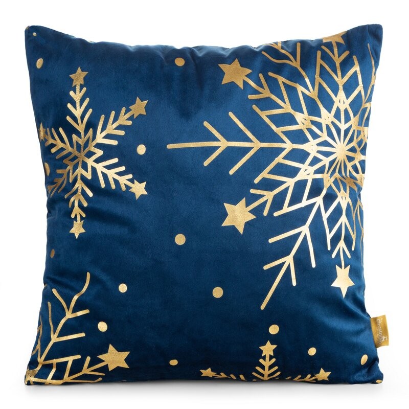 świąteczna poszewka welwetowa z ozdobnym nadrukiem foliowym szerokość: 45 cm, długość: 45 cm, kolor: granatowy, Gramatura: 210 GSM, Skład: 100% poliester