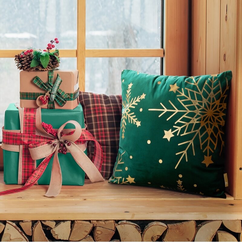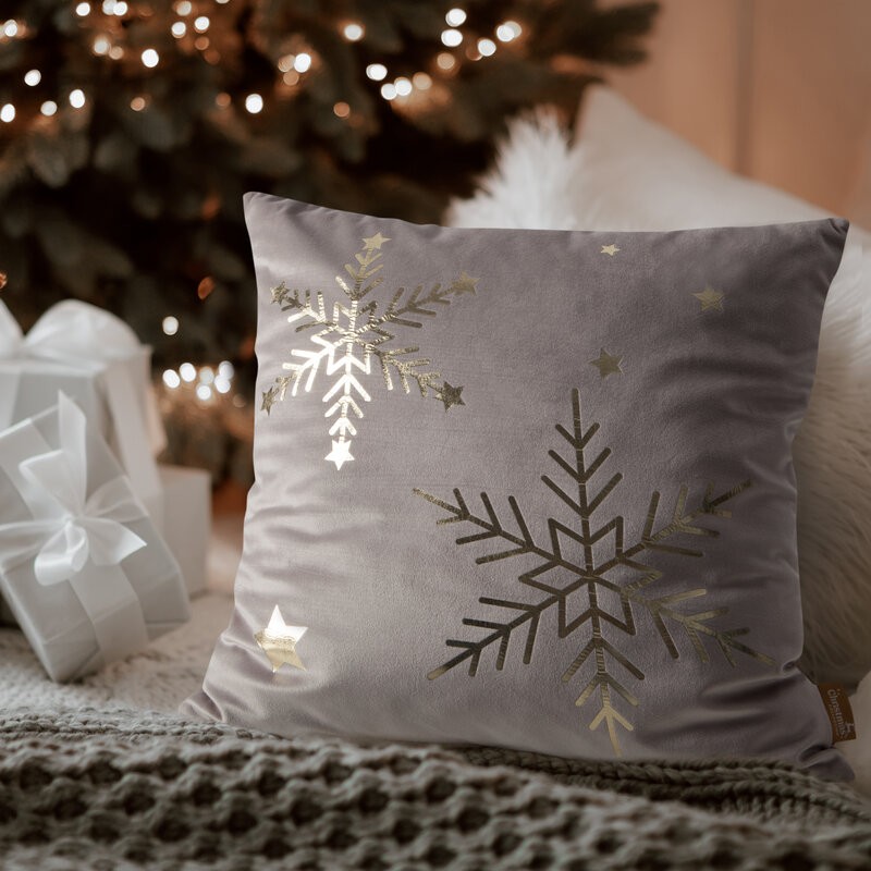 Ta poszewka łączy elegancję welwetu z błyszczącym, świątecznym motywem, tworząc przytulną i nastrojową atmosferę w Twoim wnętrzu.