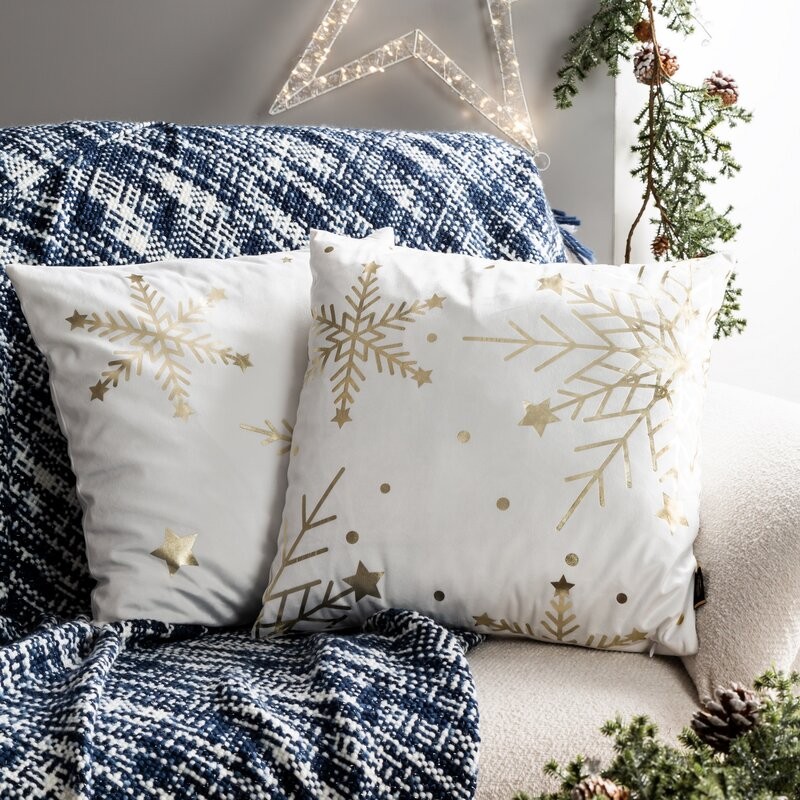 Poszewka na poduszkę świąteczna 45x45 cm welwetowa biało, złota z lśniącym nadrukiem