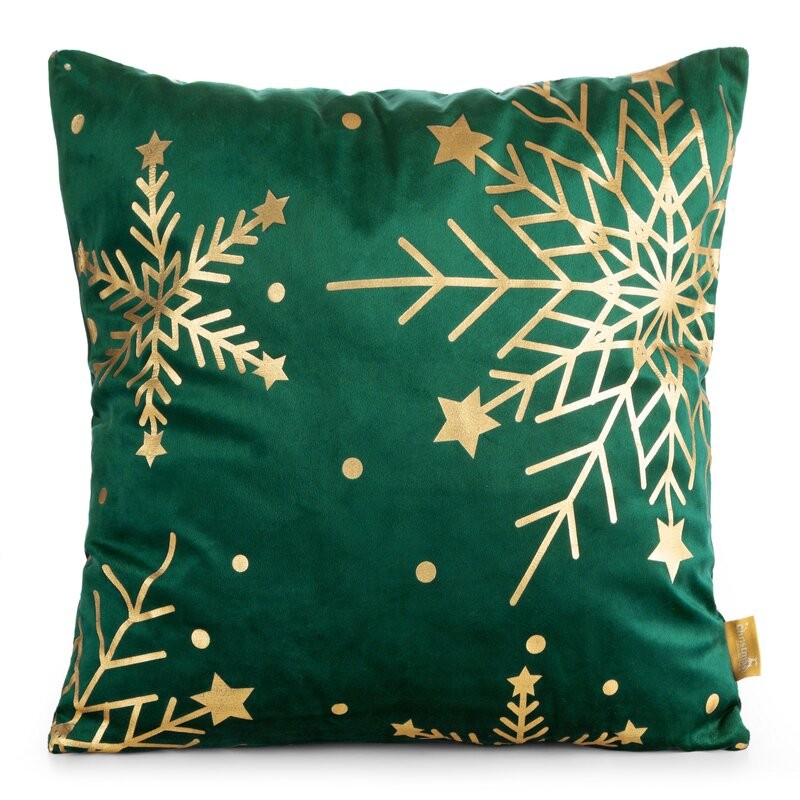 świąteczna welwetowa poszewka z nadrukiem szerokość: 45 cm, długość: 45 cm, kolor: zielony, Gramatura: 260 GSM GSM, Skład: 100% poliester