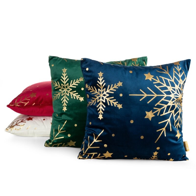 świąteczna poszewka welwetowa z ozdobnym nadrukiem foliowym szerokość: 45 cm, długość: 45 cm, kolor: granatowy, Gramatura: 210 GSM, Skład: 100% poliester
