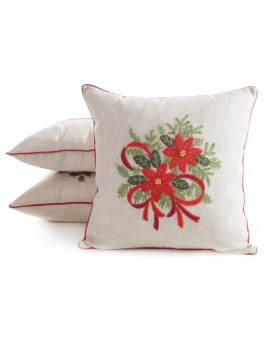 świąteczna poszewka dekoracyjna z aplikacja imitująca len szerokość: 45 cm, długość: 45 cm, kolor: czerwony, Gramatura: 160 GSM, Skład: 90% poliester, 10% len