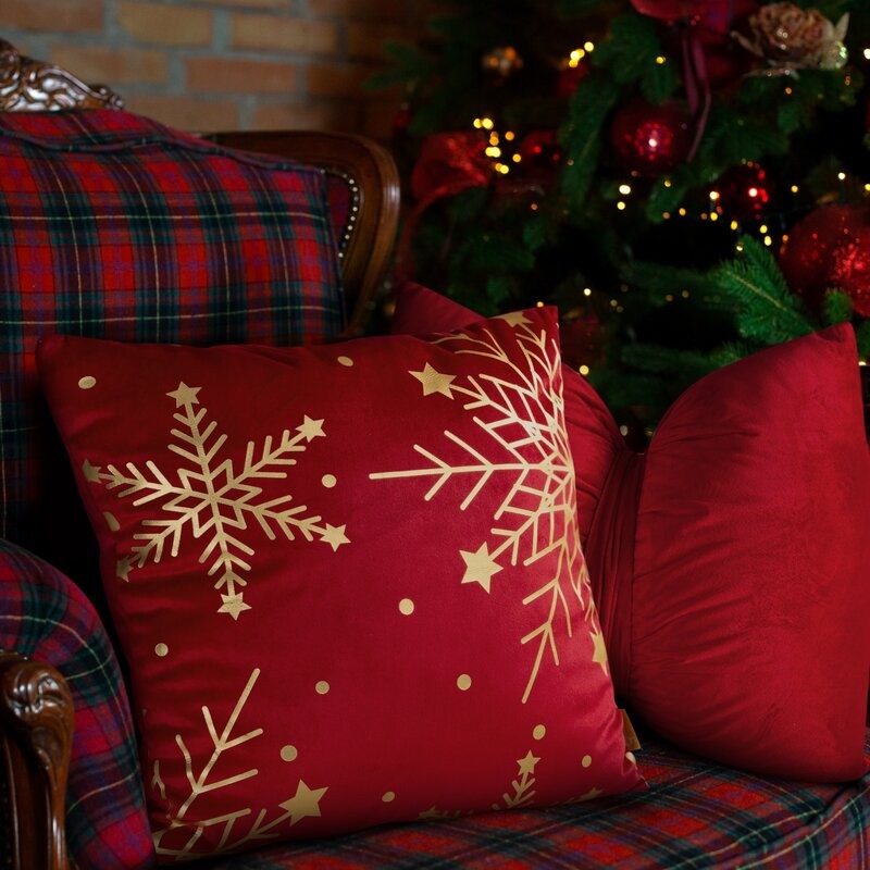 Poszewka świąteczna JOY z welwetu zdobiona złotym nadrukiem