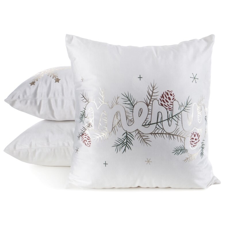 Welwetowa świateczna poszewka dekoracyjna z aplikacją szerokość: 45 cm, długość: 45 cm, kolor: biały, Skład: 100% poliester