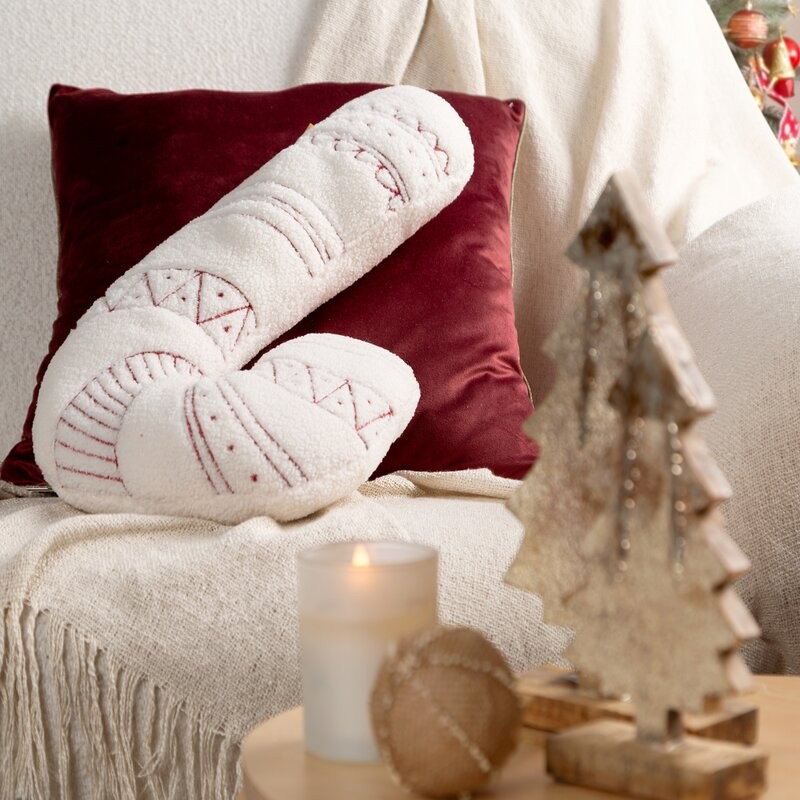 Wyjątkowa poduszka świąteczna w kształcie laski cukrowej to niebanalna dekoracja, która od razu wprowadzi do wnętrza radosny, bożonarodzeniowy nastrój. Uszyta z modnej tkaniny typu bukla, zachwyca swoją miękką strukturą i oryginalnym wyglądem. Zdobiona eleganckim haftem, stanie się nie tylko praktycznym elementem wyposażenia, ale także stylową ozdobą salonu lub sypialni.