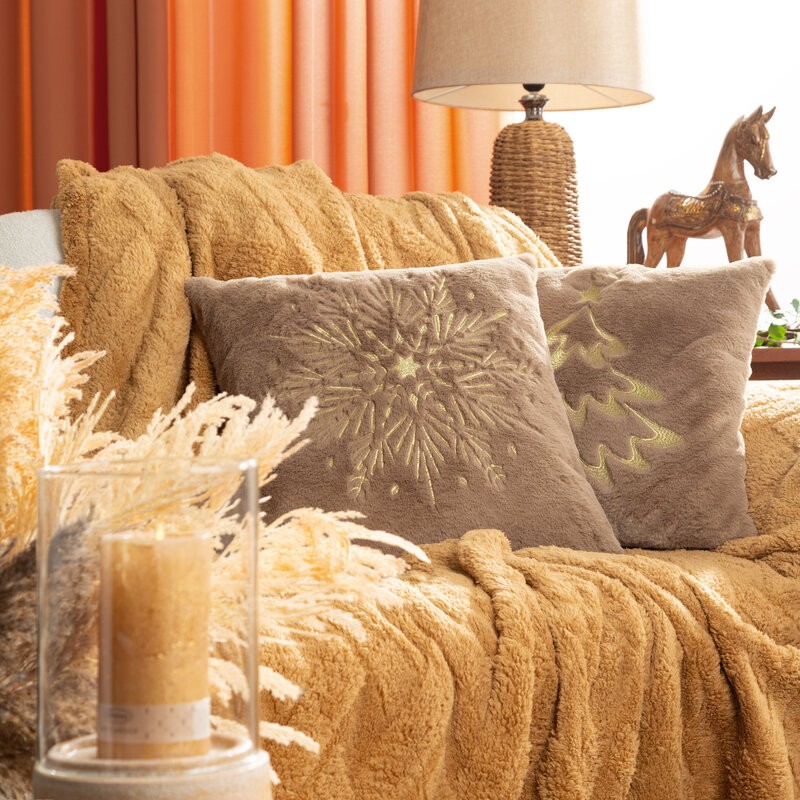 świąteczna poszewka dekoracyjna szerokość: 45 cm, długość: 45 cm, kolor: miodowy, Gramatura: 300 GSM, Skład: 100% poliester