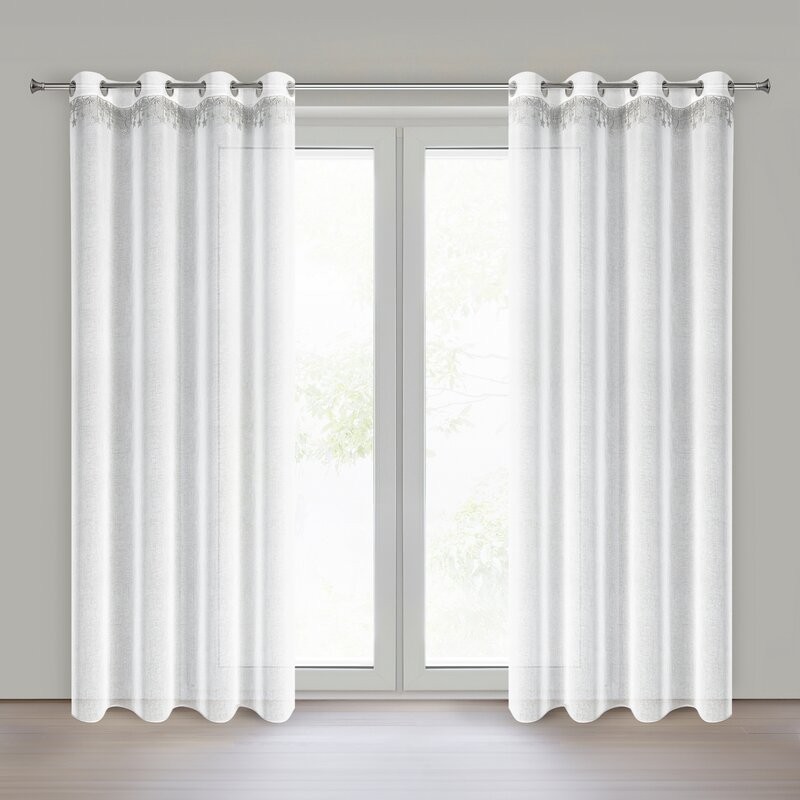 Dzięki metalowym przelotkom firana z łatwością układa się w dekoracyjne fale i pozwala na szybkie, wygodne zawieszenie na karniszu.