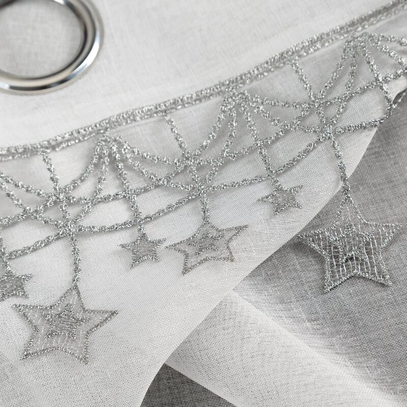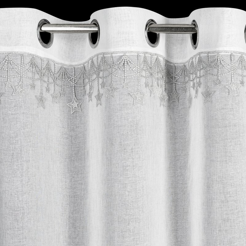 Firana świąteczna biała z etaminy zdobiona aplikacją z motywem gwiazdek 140x250 cm przelotki - XMAS