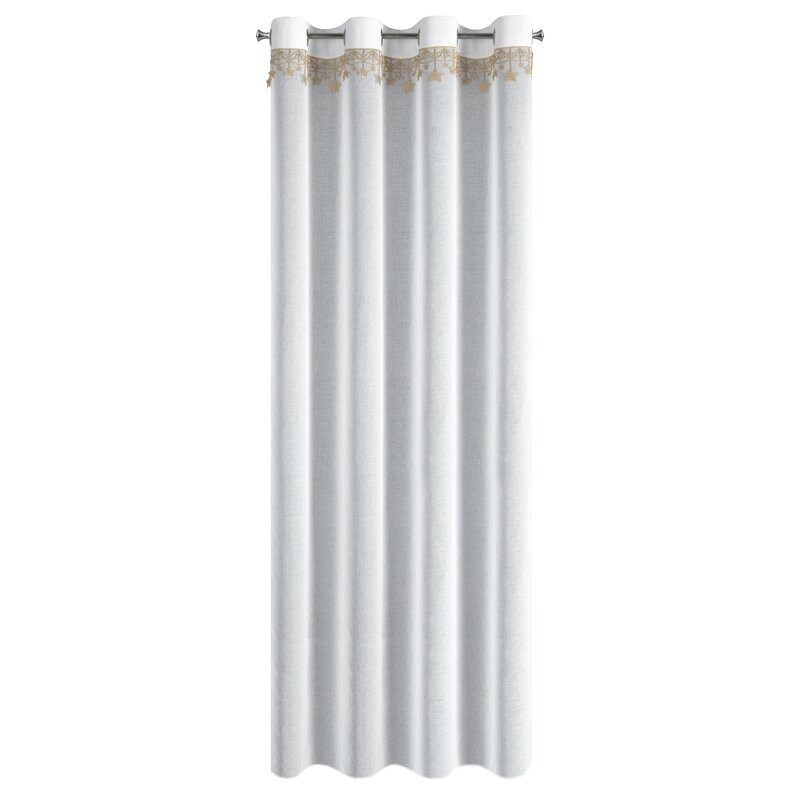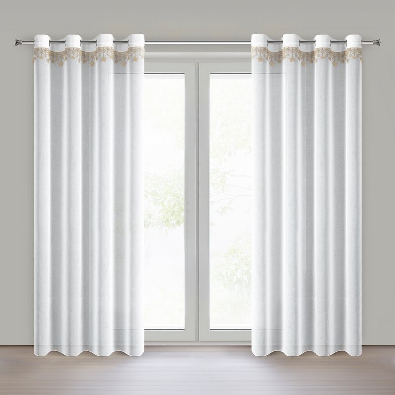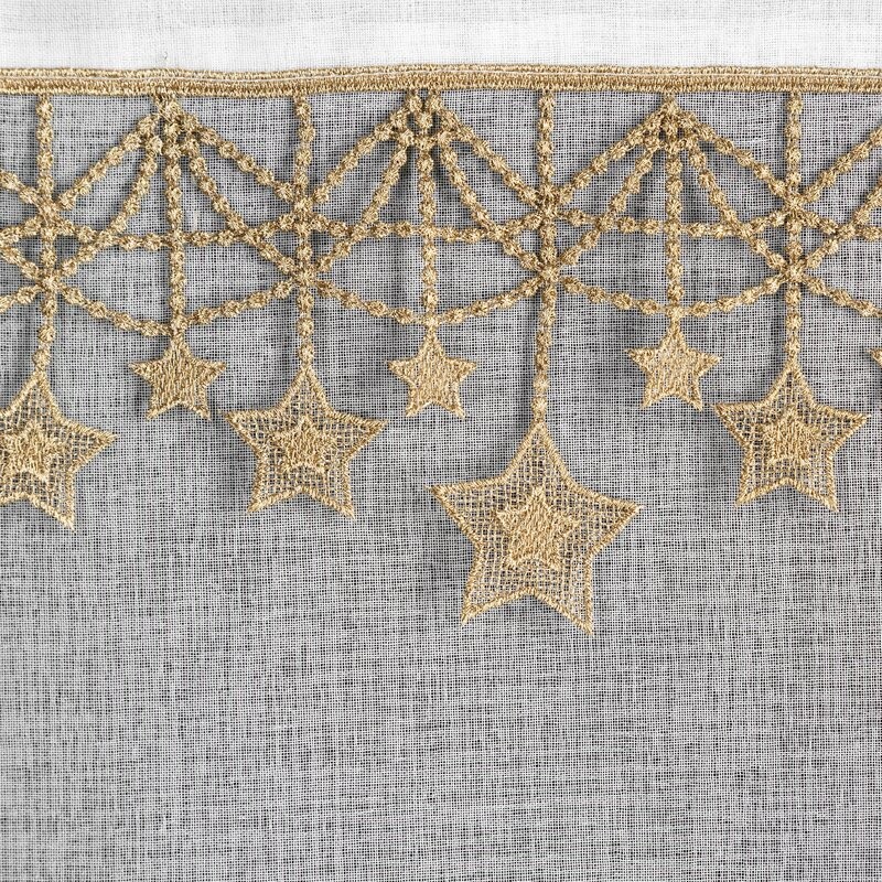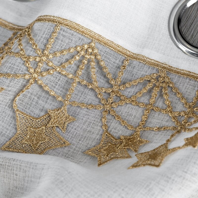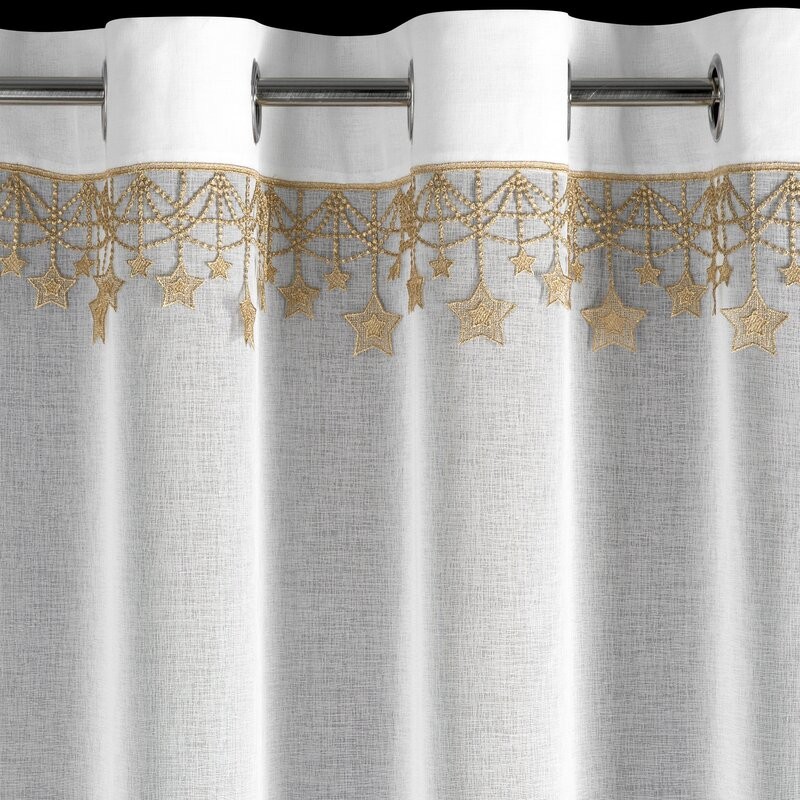 Firana świąteczna biało, złota z etaminy zdobiona aplikacją z motywem gwiazdek 140x250 cm przelotki - XMAS