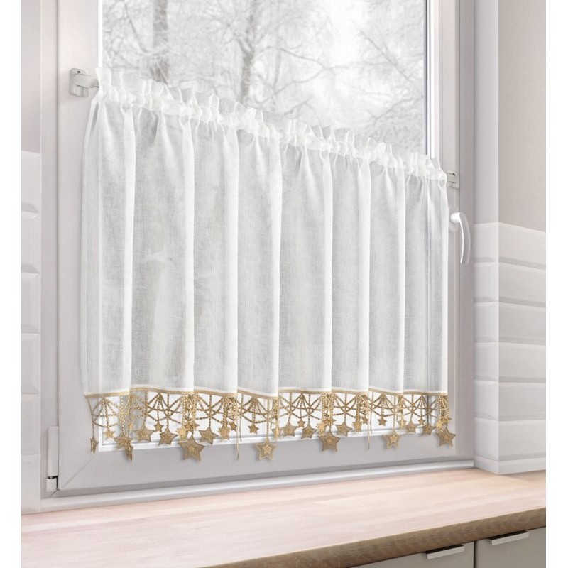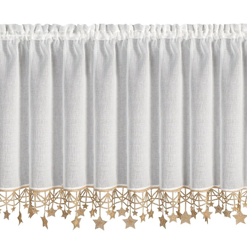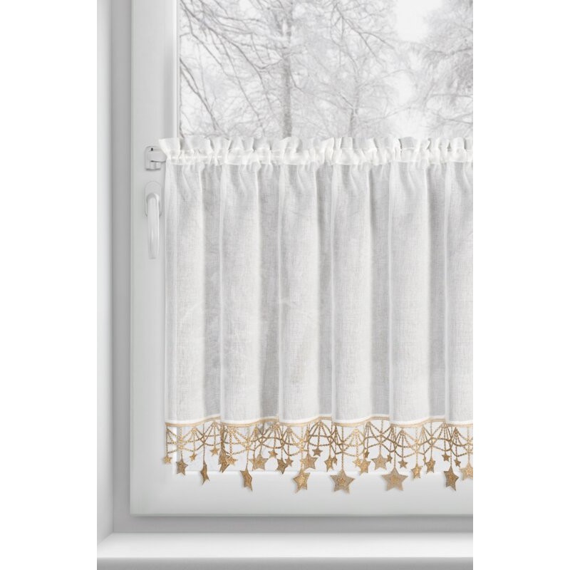Firana gotowa z świąteczną obszywką szerokość: 140 cm, długość: 250 cm, kolor: biały, Gramatura: 75 GSM, Skład: 100% poliester