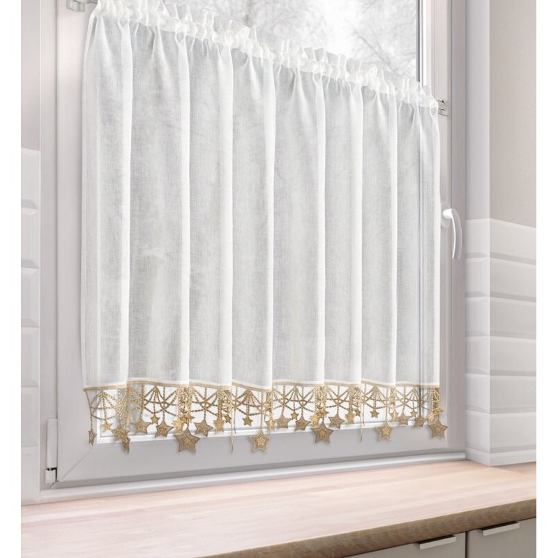 Firana gotowa z świąteczną obszywką szerokość: 140 cm, długość: 250 cm, kolor: biały, Gramatura: 75 GSM, Skład: 100% poliester