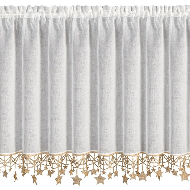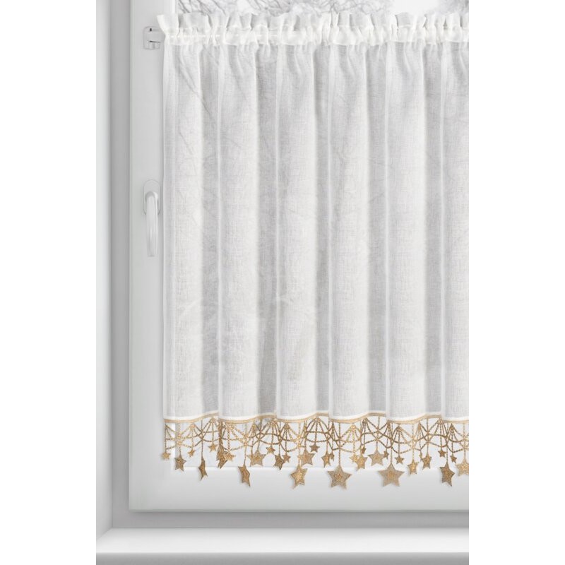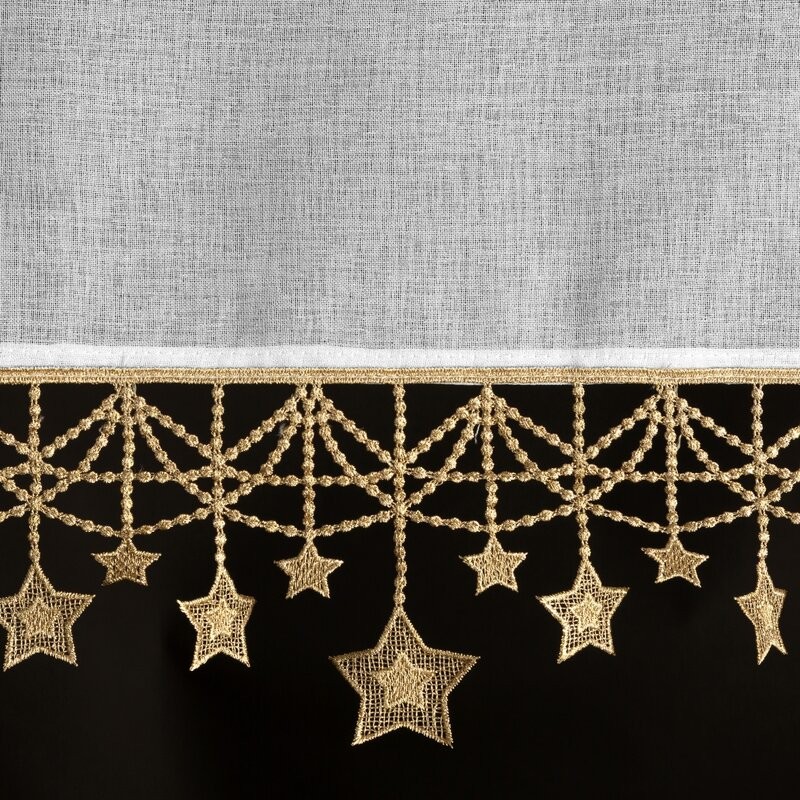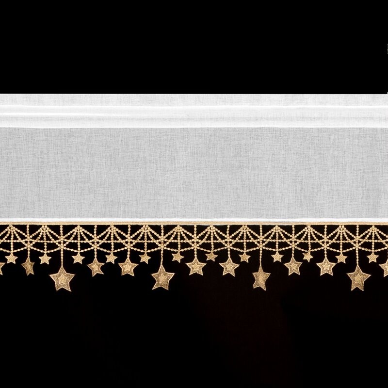 Firana gotowa z świąteczną obszywką szerokość: 140 cm, długość: 250 cm, kolor: biały, Gramatura: 75 GSM, Skład: 100% poliester
