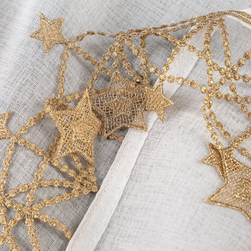 Zazdrostka biała z etaminy zdobiona świątecznymi gwiazdkami 150x90 cm tunel - XMAS