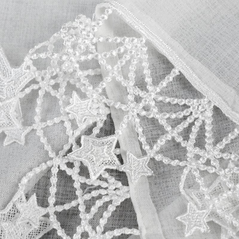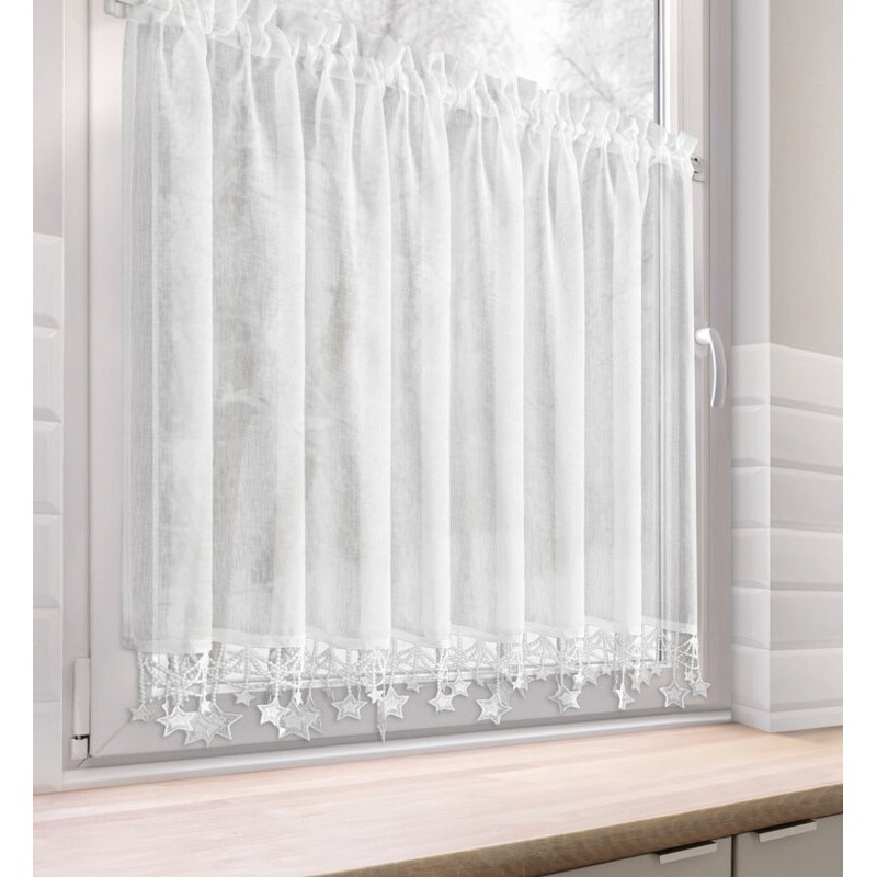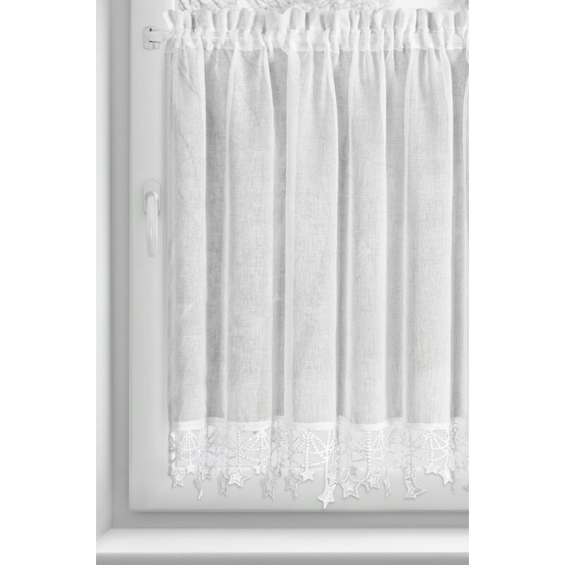 Firana świąteczna biała z etaminy zdobiona aplikacją z motywem gwiazdek 140x250 cm przelotki - XMAS