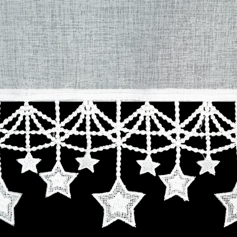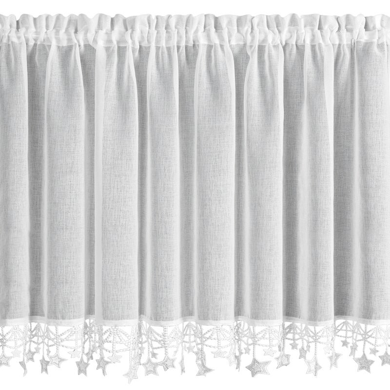 Firana gotowa z świąteczną obszywką szerokość: 140 cm, długość: 250 cm, kolor: biały, Gramatura: 75 GSM, Skład: 100% poliester