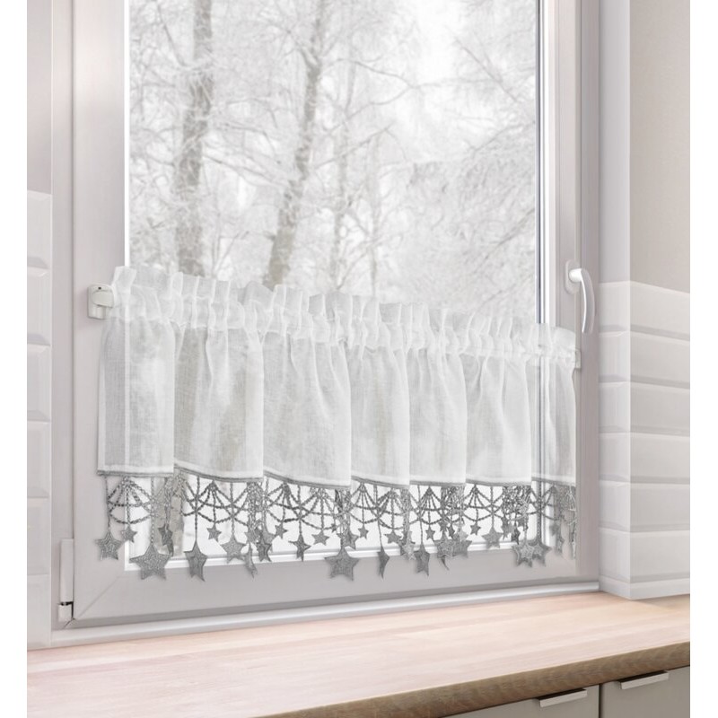 Firana gotowa z motywem świątecznym szerokość: 140 cm, długość: 250 cm, kolor: biały, Gramatura: 138 GSM, Skład: 100% poliester