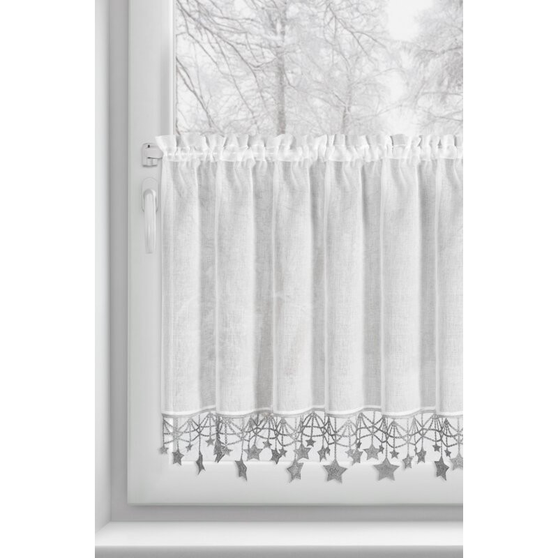 Firana świąteczna biała z etaminy zdobiona aplikacją z motywem gwiazdek 140x250 cm przelotki - XMAS