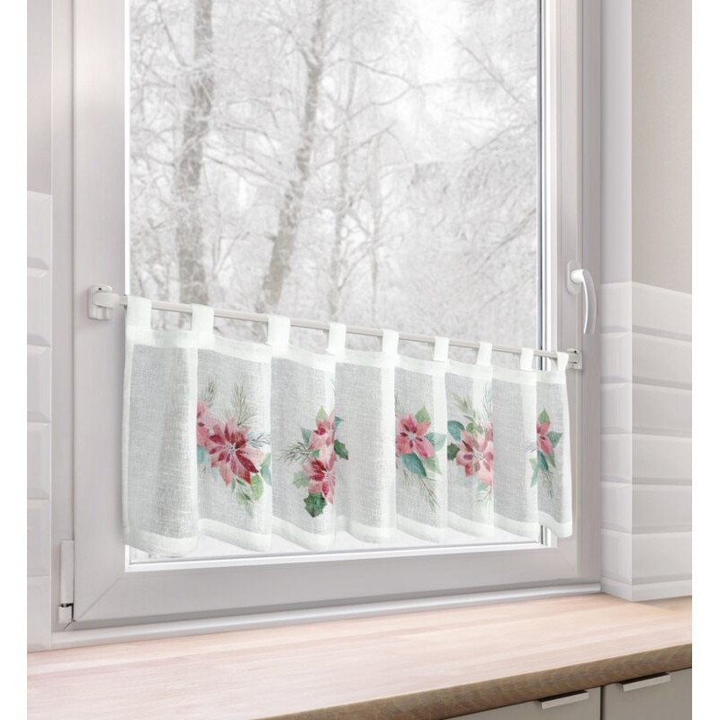 Firana gotowa z świąteczną obszywką szerokość: 140 cm, długość: 250 cm, kolor: biały, Gramatura: 75 GSM, Skład: 100% poliester