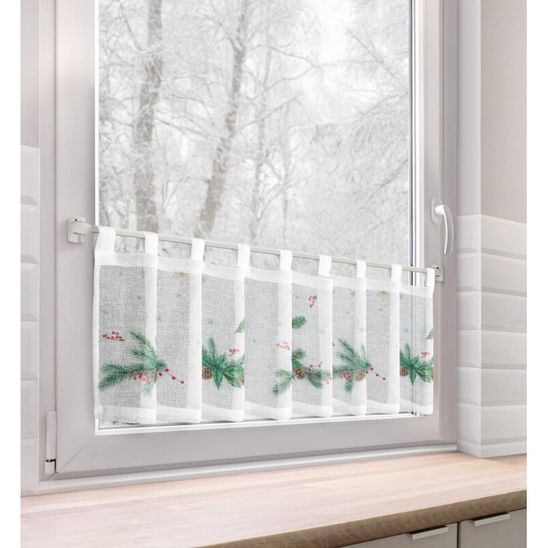 Firana gotowa z motywem świątecznym szerokość: 140 cm, długość: 250 cm, kolor: biały, Gramatura: 138 GSM, Skład: 100% poliester