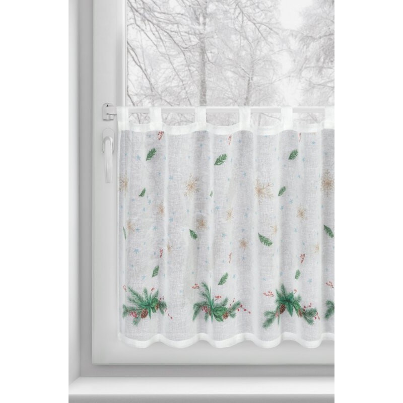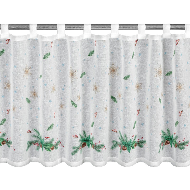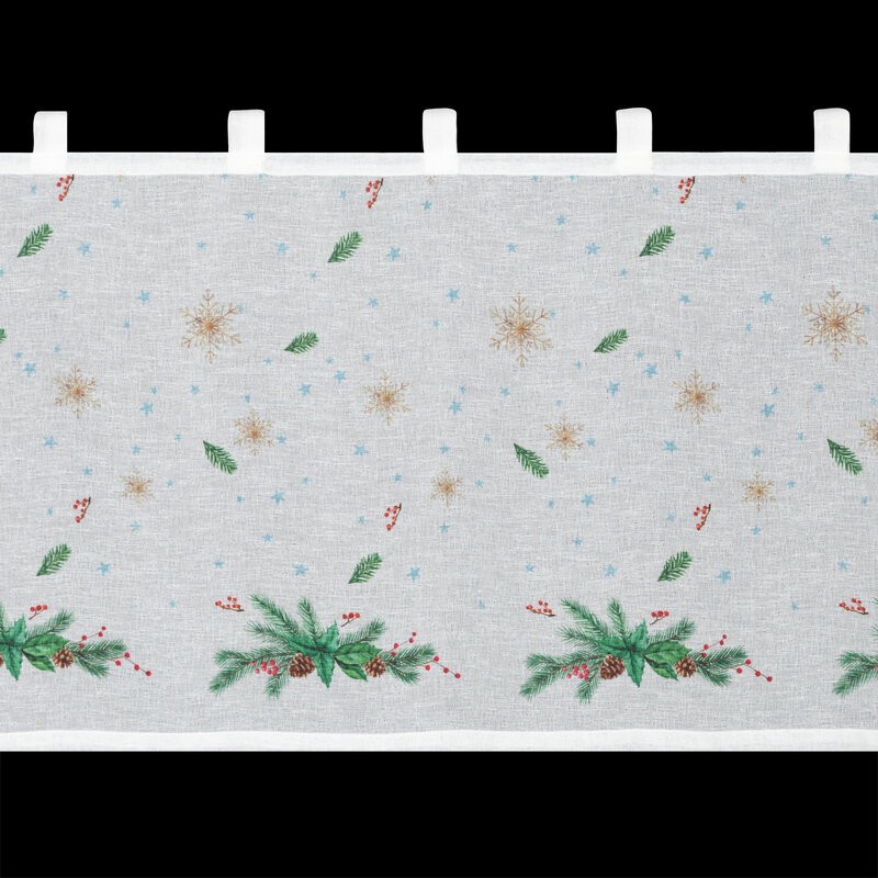 Nadaj swojemu wnętrzu wyjątkowego charakteru w świątecznym okresie dzięki eleganckiej zazdrostce uszytej z lekkiej, półtransparentnej etaminy. Subtelny nadruk z motywem świątecznym pięknie ozdabia okno, wprowadzając do kuchni lub jadalni ciepłą i nastrojową atmosferę.
