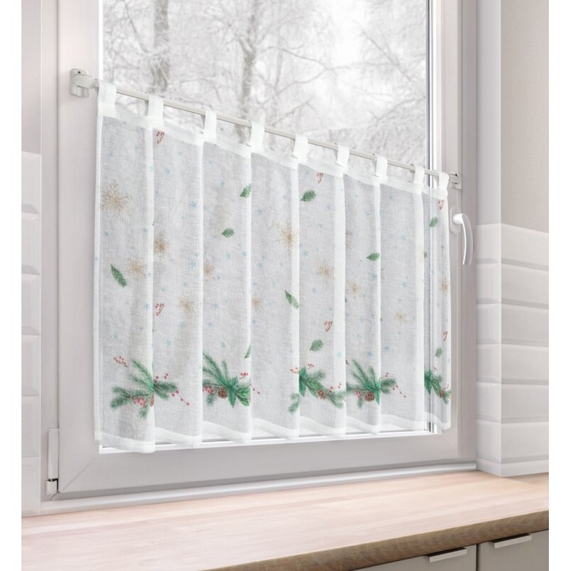 Firana gotowa z świąteczną obszywką szerokość: 140 cm, długość: 250 cm, kolor: biały, Gramatura: 75 GSM, Skład: 100% poliester