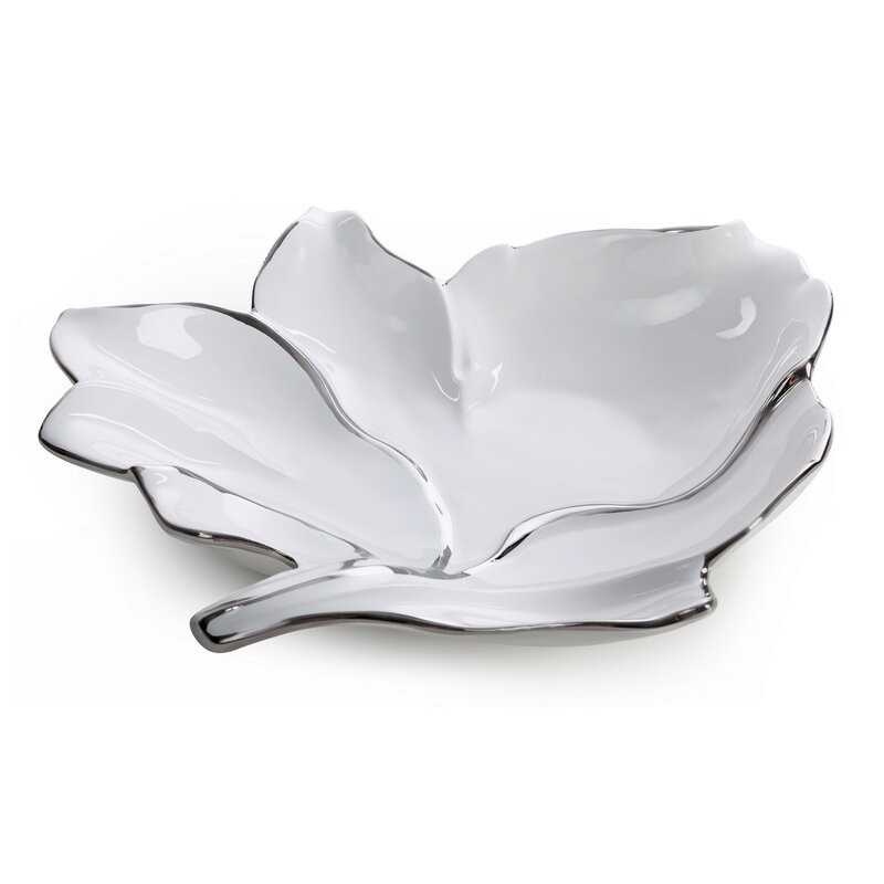 Patera metalowa SARA srebrny liść z wytłoczeniami