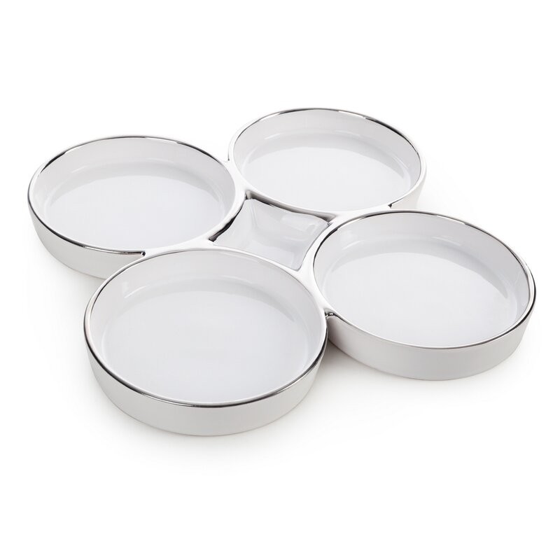 Patera dekoracyjna MADLEN okrągła biała ze srebrnym zdobieniem nowoczesne wzornictwo