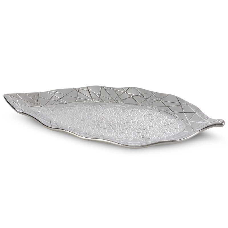 Patera metalowa SARA srebrny liść z wytłoczeniami